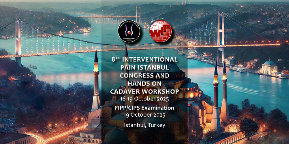 It is again a great pleasure and honour to welcome you to the 8th IPI (Interventional Pain Istanbul) Pain Congress, endorsed by World Institute of Pain and organized by their Turkish Registered Section. Three days of lectures and cadaver workshops, followed by the FIPP-CIPS examination.